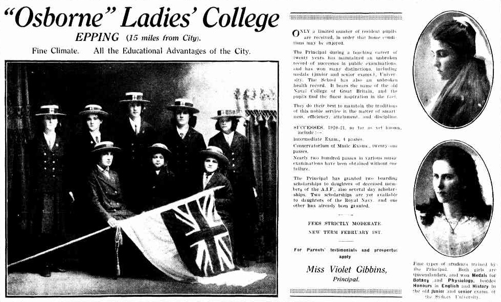 The Everinghams, a farming family from Batar’s Creek near Kendall NSW had responded to an advertisement similar to the one below offering scholarships to ‘the daughters of country families’ to attend the Osborne Ladies’ College, then in Epping, Sydney.