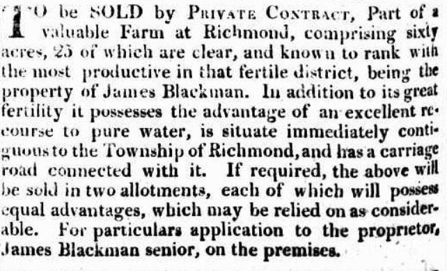 [8] Australian Dictionary of Biography, “Blackman, James’, http://adb.anu.edu.au/biography/blackman-james-1790, Accessed 10 November 2019
