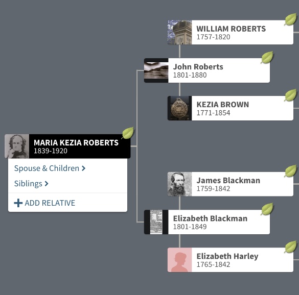 Maria Kezia was the grand daughter of William ROBERTS, a convict sent to Australia on the Scarborough in the First Fleet. William married Kezia BROWN, a convict who was transported to Australia on the Neptune, better known as the Hell Ship of the Death Fleet.
