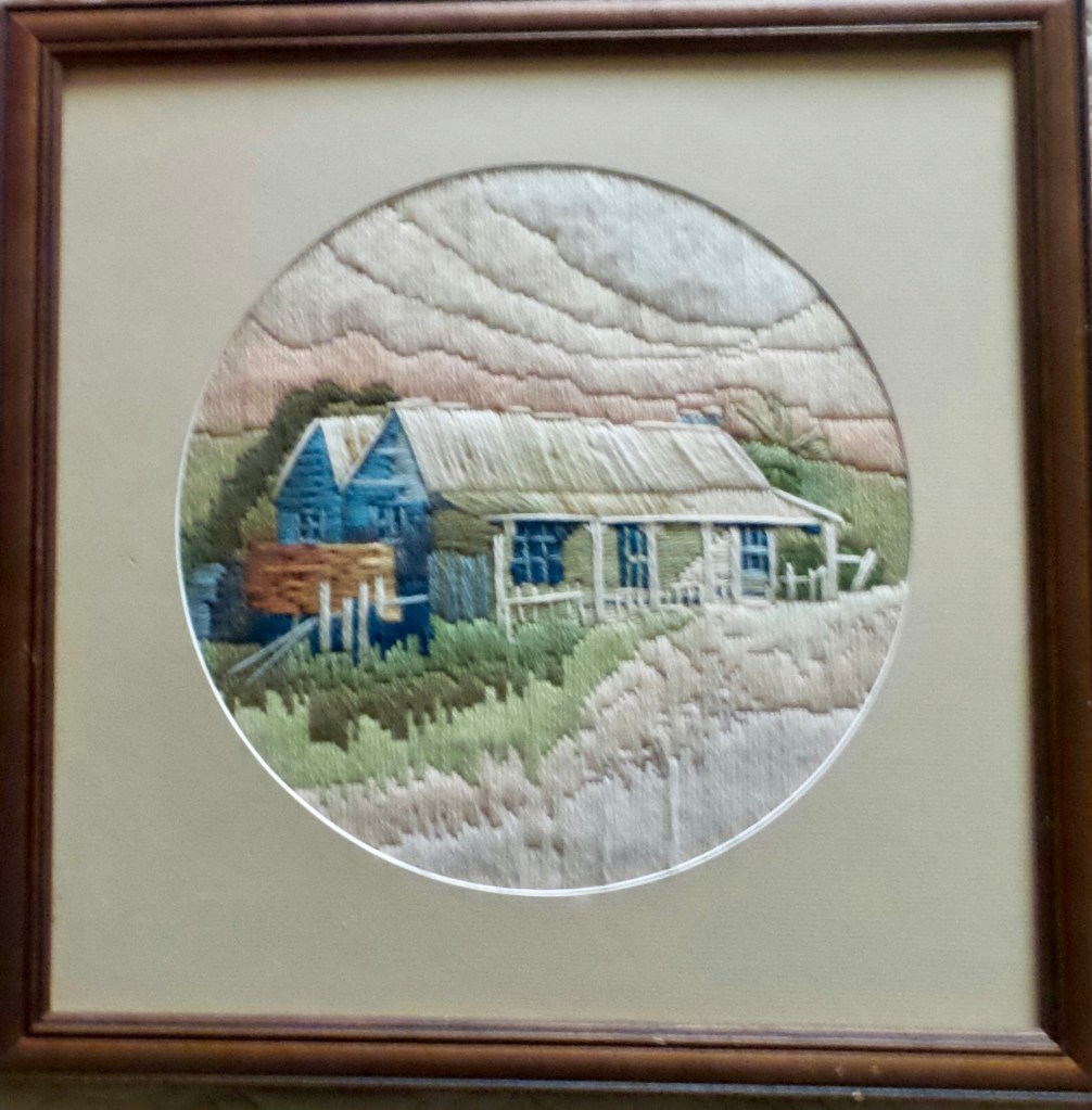 The first thing that I grabbed off the walls was a fairly common tapestry of an Australian homestead. It is far from perfect but those imperfections and the reasons for them ensure that the tapestry will always be treasured by me.