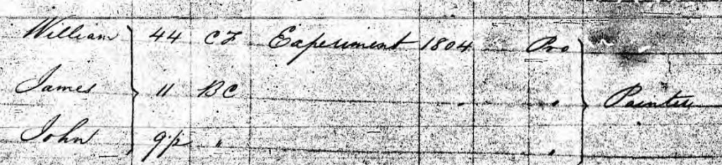 The 1828 census shows me that by then my 3x great-grandparents were leading very different lives. William was working as a painter while living in Bathurst Street Sydney with his two eldest sons John and James.
